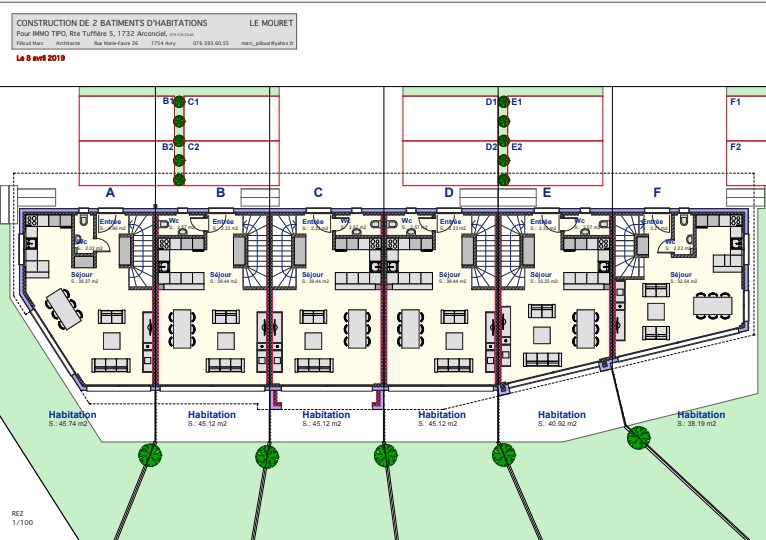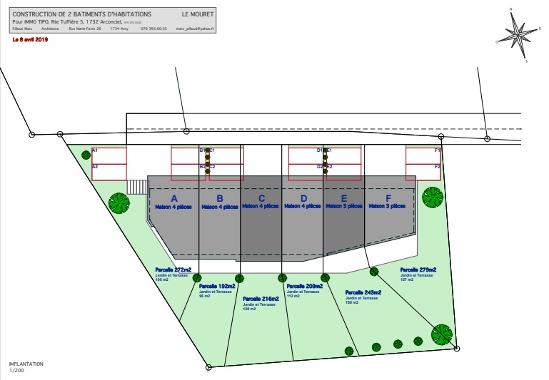 Le Mouret comprenant : 1 maison (MV) et 6 villas contiguës (TV)