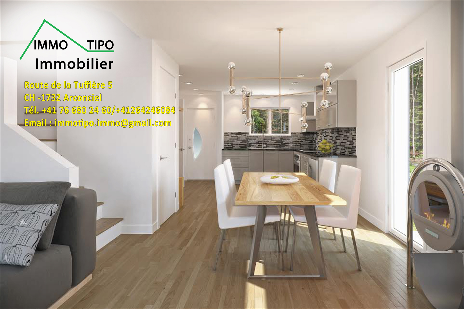 Située dans un nouveau quartier proche de toutes les commodités, commerces, arrêt de bus, école primaire. Au calme et dans la verdure à seulement 6 km de la sortie d’autoroute de matran, 5 km du centre commercial d’Avry, 14 km de Fribourg et à 10 km de Payerne. Surface de la parcelle, y compris part commune 103,11 m2: 511 m2 Volume: 485 m3 Places de parc ext.: 2 places